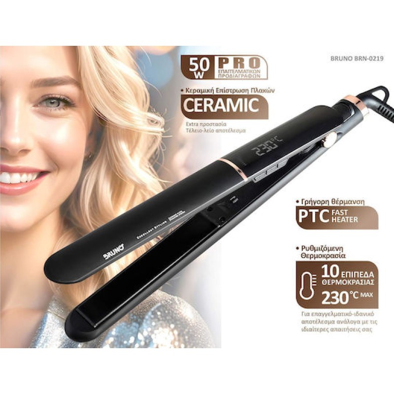 Η ισιωτική πρέσα μαλλιών BRUNO BRN-0219, είναι ιδανική για ίσιωμα μαλλιών και χτενίσματα με σπαστά-κυματιστά μαλλιά ή μπούκλες.
