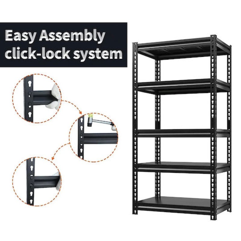 Μεταλλική ραφιέρα HOME USE HUH-0248 με 5 ράφια, διαστάσεων 90x40x183cm, σε μαύρο χρώμα.